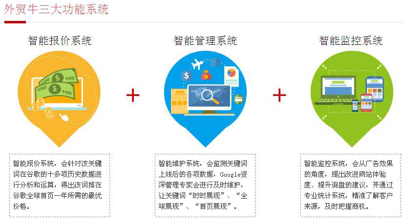 谷歌博大精深,如何运用好这个营销平台成了大多数企业的棘手难题。“善用者知其利,乱用者苦其弊”是当今中国外贸企业使用谷歌平台的最佳写照。希意网络通过近十年来维护万余家外贸企业的一线经验,精准的针对外贸企业的痛点推出的“外贸牛”,深受广大企业的欢迎,其独创的报价体系、专业的广告维护、智能的监控系统、让外贸企业省钱、省人、省心、省力的运营模式,犹如漂荡于波浪滔天的大海之中的航船终于迎来了经验丰富的舵手,让企业的全球营销可以更安全更快速的驶向成功的彼岸。