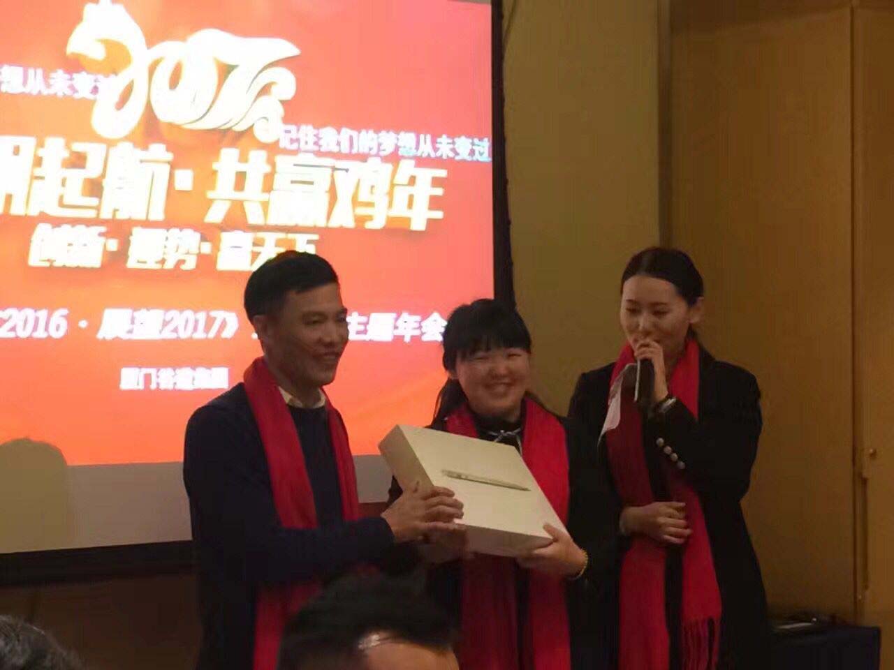 一切来得太神秘,毫无征兆,主持人宣布外贸牛大BOSS为了感谢8年来一直追随外贸牛并开拓进取的老员工,送上让人羡慕嫉妒的神秘大礼——苹果笔记本、苹果笔记本、苹果笔记本,这无疑是对支持者最好的回应与激励,努力的付出与真诚的感恩,温暖了在场的所有人。