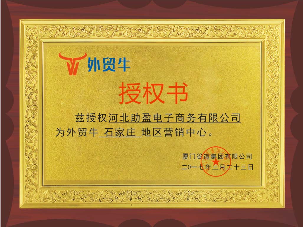 河北助盈电子商务对外贸行业的深刻认识和对外贸牛产品的高度认可,赢来了双方的互惠合作,外贸牛正式进入石家庄及中国华北市场,并授权河北助盈电子商务有限公司,为外贸牛石家庄地区营销中心资格。
