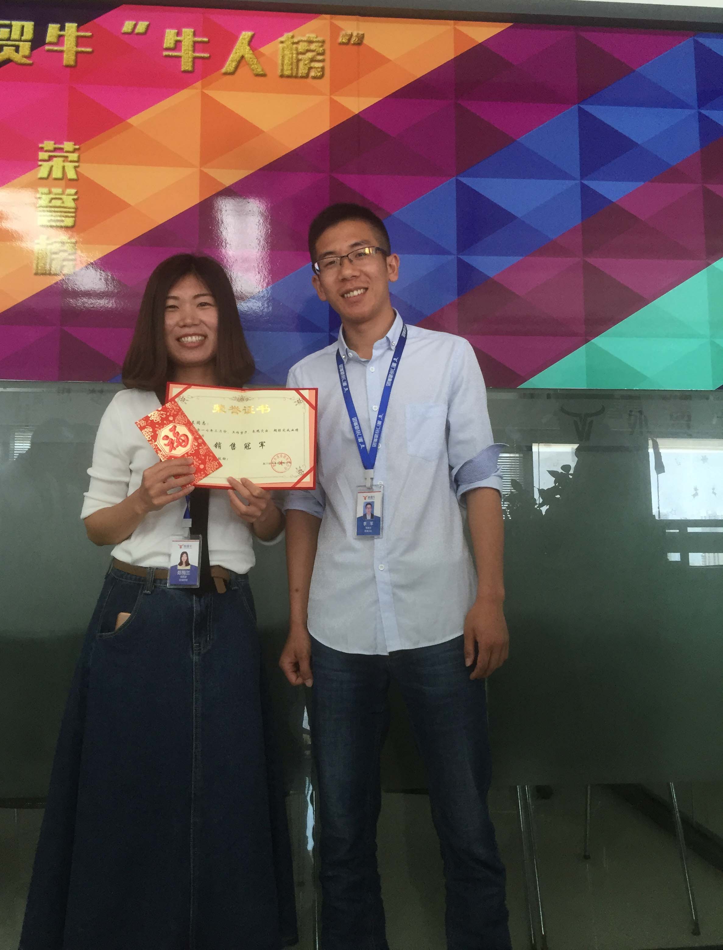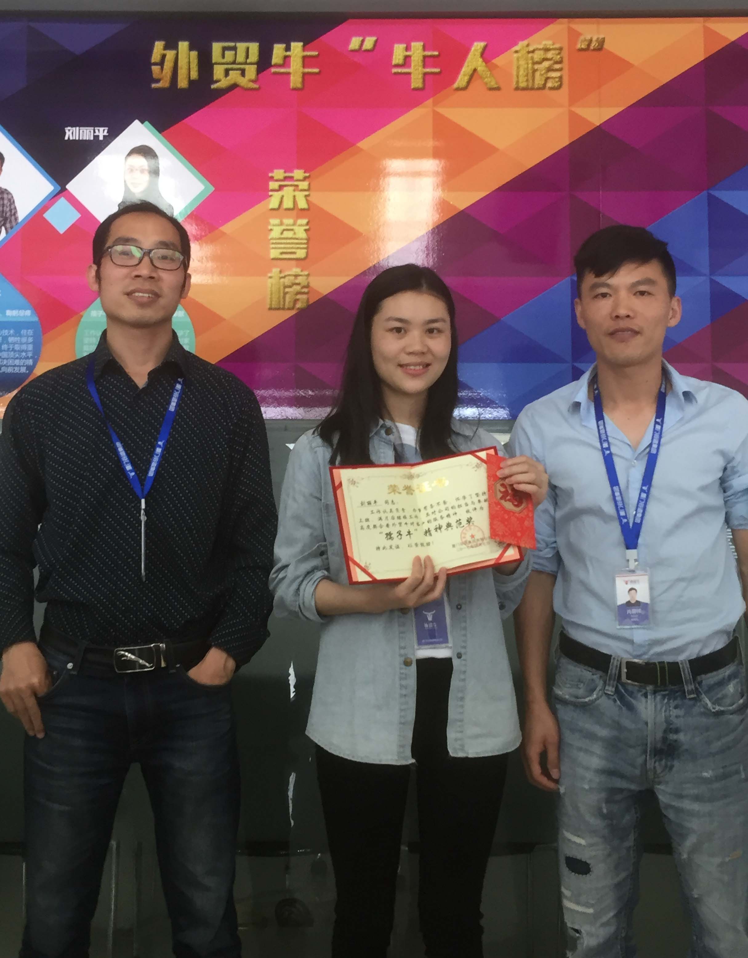 工作认真负责,办事有条不紊,怀孕了坚持上班,满月后继续工作。怀着对家庭的责任和工作的热情,朴实无华,默默无闻,任劳任怨,在平凡的岗位上拥有着闪光的价值,其对公司的责任担当高度契合着外贸牛对客户的服务精神。